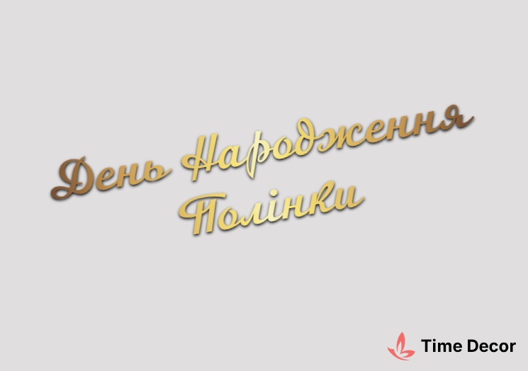 Пластиковий напис "День Народження Полiнки" – дзеркальний або матовий пластик, можливе виготовлення з клейкою зворотною поверхнею для легкого монтажу.