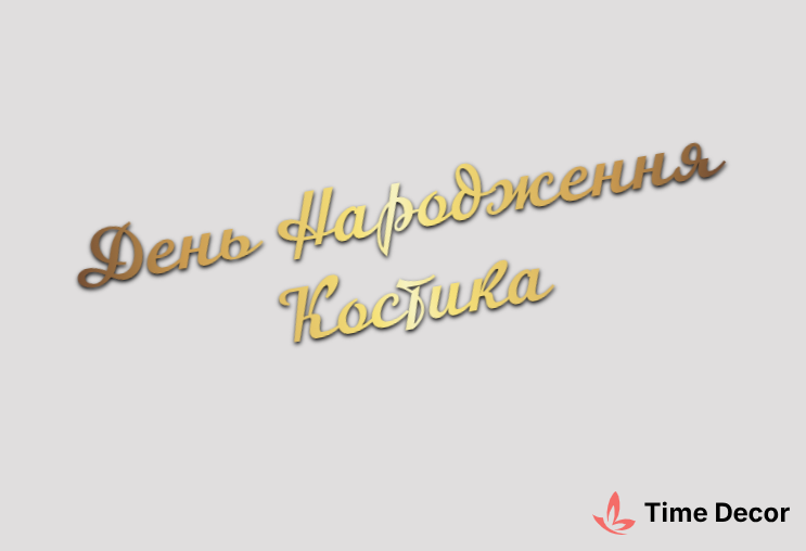 Пластиковий напис "День Народження Костика" – дзеркальний або матовий пластик, можливе виготовлення з клейкою зворотною поверхнею для легкого монтажу.