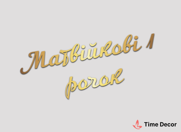 Пластиковий напис "Матвійкові 1 рочок" – дзеркальний або матовий пластик, можливе виготовлення з клейкою зворотною поверхнею для легкого монтажу.