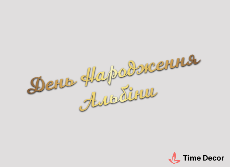 Пластиковий напис "День Народження Альбіни" – дзеркальний або матовий пластик, можливе виготовлення з клейкою зворотною поверхнею для легкого монтажу.