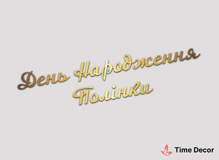Пластиковий напис "День Народження Полінки" – дзеркальний або матовий пластик, можливе виготовлення з клейкою зворотною поверхнею для легкого монтажу.