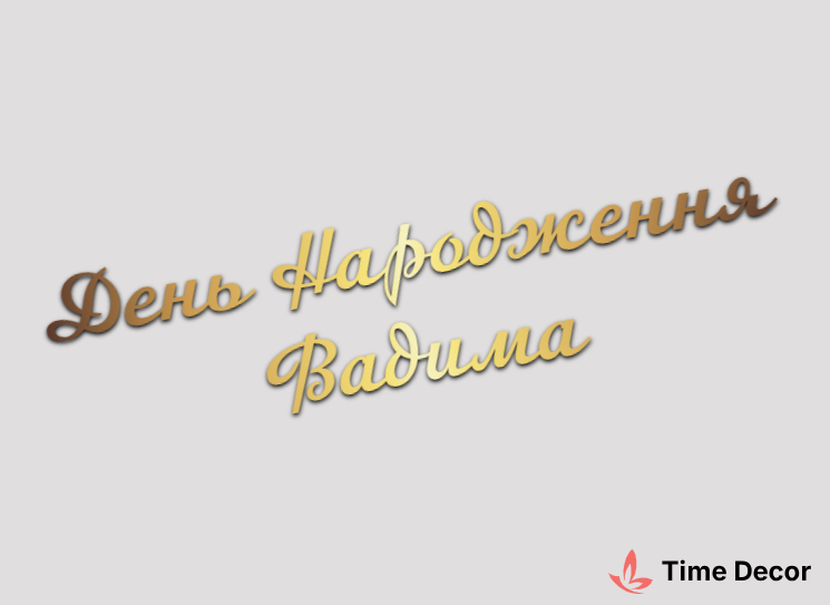 Пластиковий напис "День Народження Вадима" – дзеркальний або матовий пластик, можливе виготовлення з клейкою зворотною поверхнею для легкого монтажу.