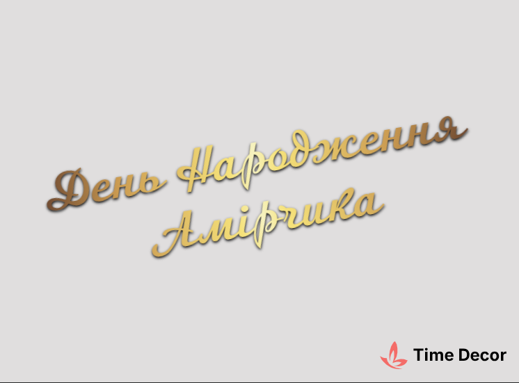 Пластиковий напис "День Народження Амірчика" – дзеркальний або матовий пластик, можливе виготовлення з клейкою зворотною поверхнею для легкого монтажу.