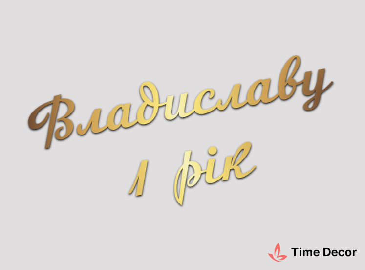 Пластиковий напис "Владиславу 1 рік" – дзеркальний або матовий пластик, можливе виготовлення з клейкою зворотною поверхнею для легкого монтажу.
