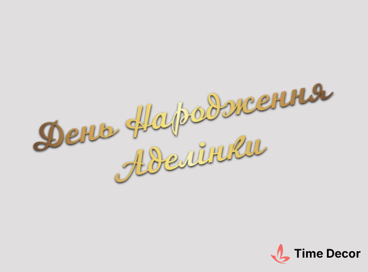 Пластиковий напис "День Народження Аделінки" – дзеркальний або матовий пластик, можливе виготовлення з клейкою зворотною поверхнею для легкого монтажу.