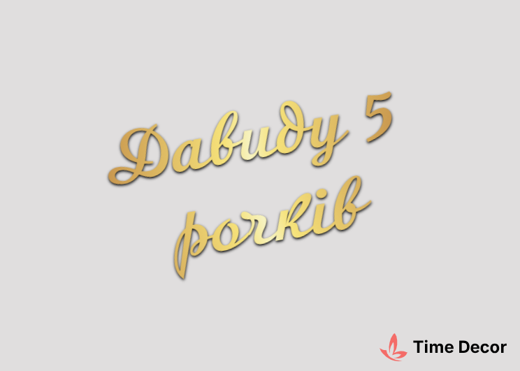 Пластиковий напис "Давиду 5 рочків" – дзеркальний або матовий пластик, можливе виготовлення з клейкою зворотною поверхнею для легкого монтажу.