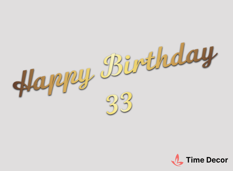 Пластиковий напис "Happy Birthday 33" – дзеркальний або матовий пластик, можливе виготовлення з клейкою зворотною поверхнею для легкого монтажу.