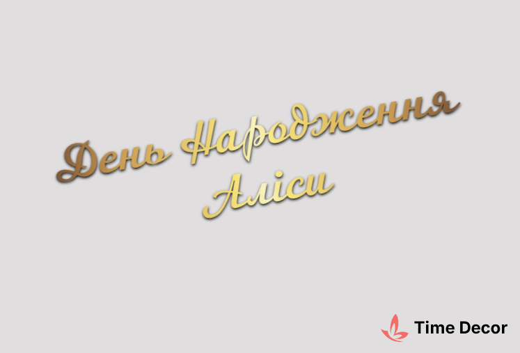 Пластиковий напис "День Народження Аліси" – дзеркальний або матовий пластик, можливе виготовлення з клейкою зворотною поверхнею для легкого монтажу.