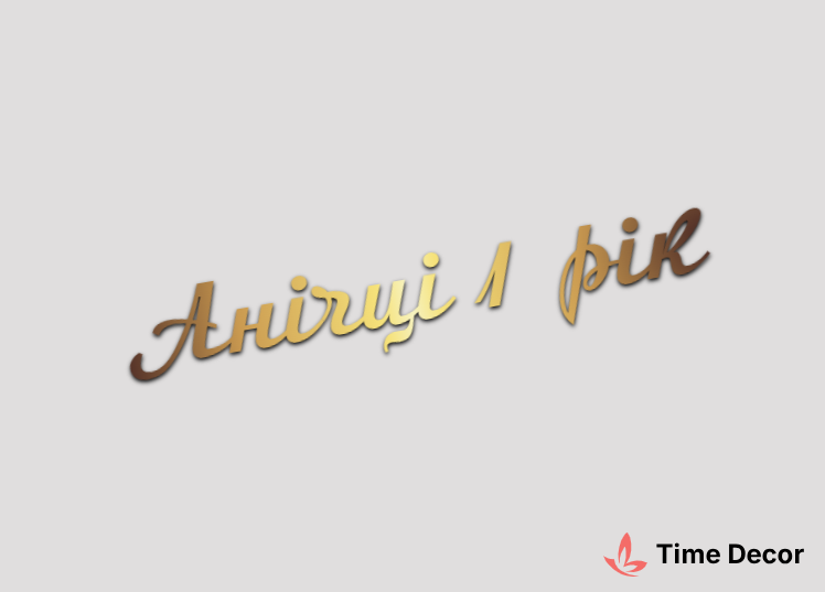 Пластиковий напис "Анічці 1 рік" – дзеркальний або матовий пластик, можливе виготовлення з клейкою зворотною поверхнею для легкого монтажу.