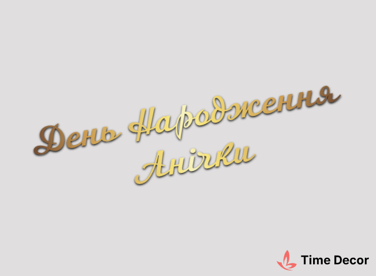 Пластиковий напис "День Народження Анічки" – дзеркальний або матовий пластик, можливе виготовлення з клейкою зворотною поверхнею для легкого монтажу.