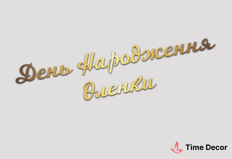 Пластиковий напис "День Народження Оленки" – дзеркальний або матовий пластик, можливе виготовлення з клейкою зворотною поверхнею для легкого монтажу.