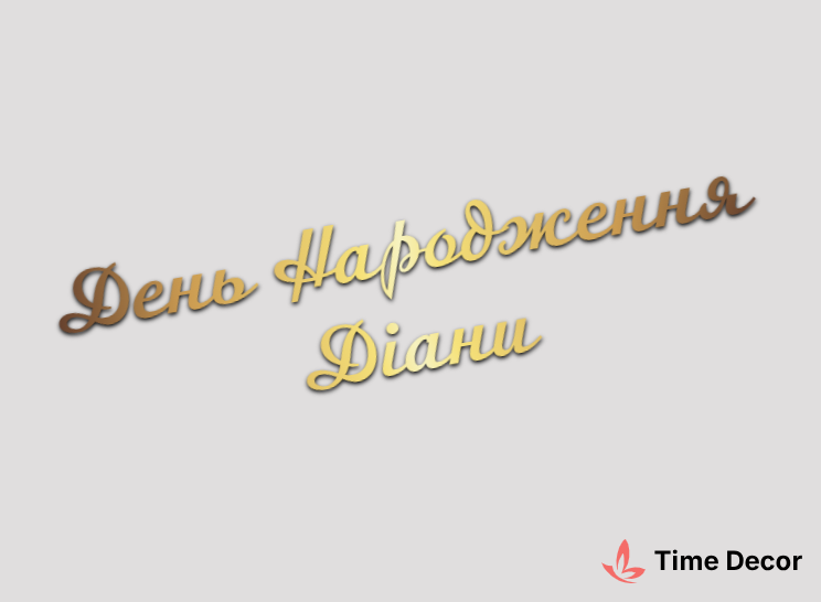Пластиковий напис "День Народження Діани" – дзеркальний або матовий пластик, можливе виготовлення з клейкою зворотною поверхнею для легкого монтажу.