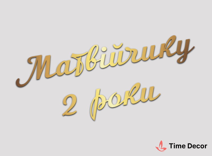 Пластиковий напис "Матвійчику 2 роки" – дзеркальний або матовий пластик, можливе виготовлення з клейкою зворотною поверхнею для легкого монтажу.