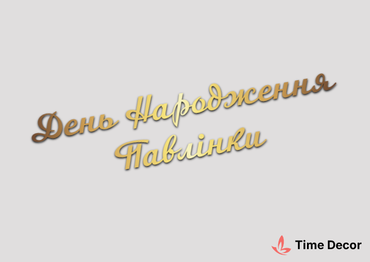Пластиковий напис "День Народження Павлінки" – дзеркальний або матовий пластик, можливе виготовлення з клейкою зворотною поверхнею для легкого монтажу.