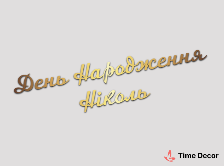 Пластиковий напис "День Народження Ніколь" – дзеркальний або матовий пластик, можливе виготовлення з клейкою зворотною поверхнею для легкого монтажу.