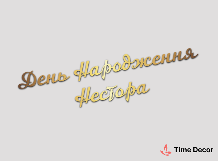 Пластиковий напис "День Народження Нестора" – дзеркальний або матовий пластик, можливе виготовлення з клейкою зворотною поверхнею для легкого монтажу.