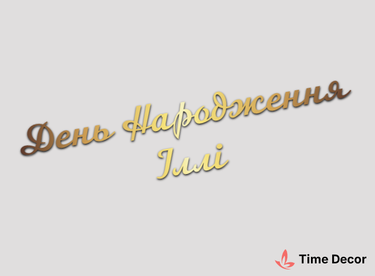 Пластиковий напис "День Народження Іллі" – дзеркальний або матовий пластик, можливе виготовлення з клейкою зворотною поверхнею для легкого монтажу.