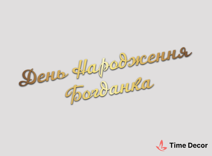 Пластиковий напис "День Народження Богданка" – дзеркальний або матовий пластик, можливе виготовлення з клейкою зворотною поверхнею для легкого монтажу.