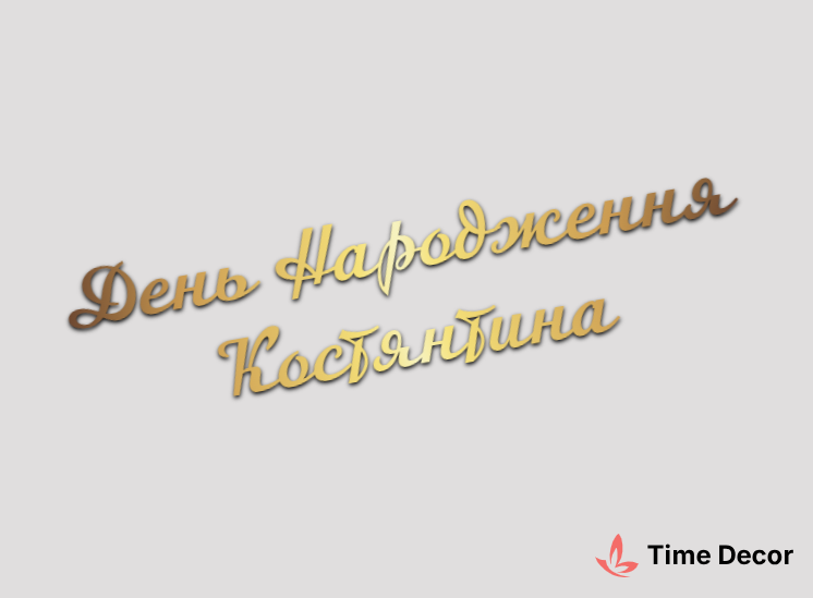 Пластиковий напис "День Народження Костянтина" – дзеркальний або матовий пластик, можливе виготовлення з клейкою зворотною поверхнею для легкого монтажу.