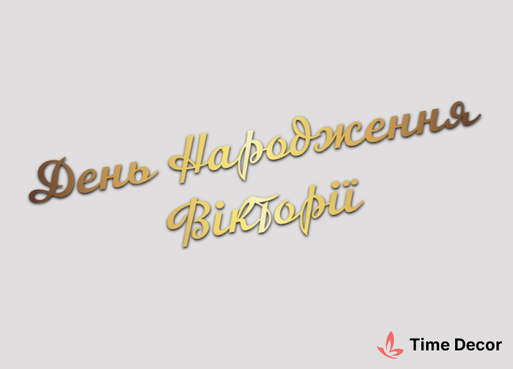 Пластиковий напис "День Народження Вікторії" – дзеркальний або матовий пластик, можливе виготовлення з клейкою зворотною поверхнею для легкого монтажу.