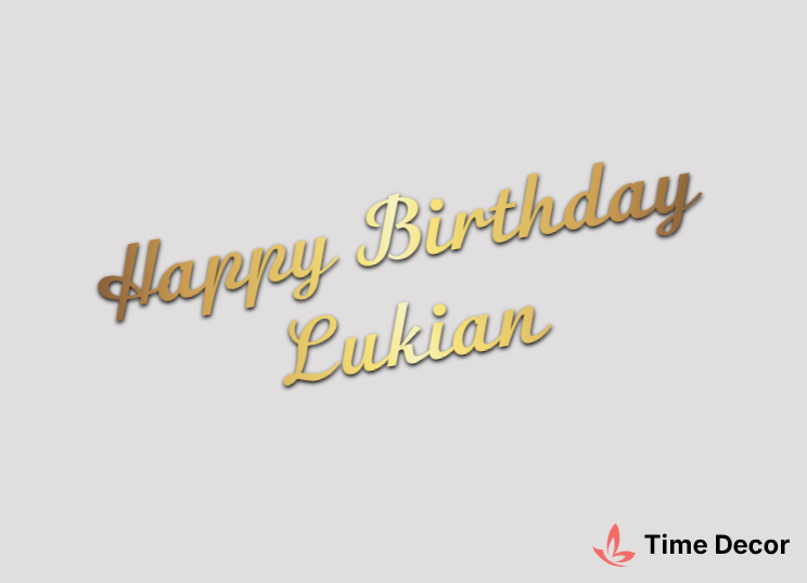 Пластиковий напис "Happy Birthday Lukian" – дзеркальний або матовий пластик, можливе виготовлення з клейкою зворотною поверхнею для легкого монтажу.