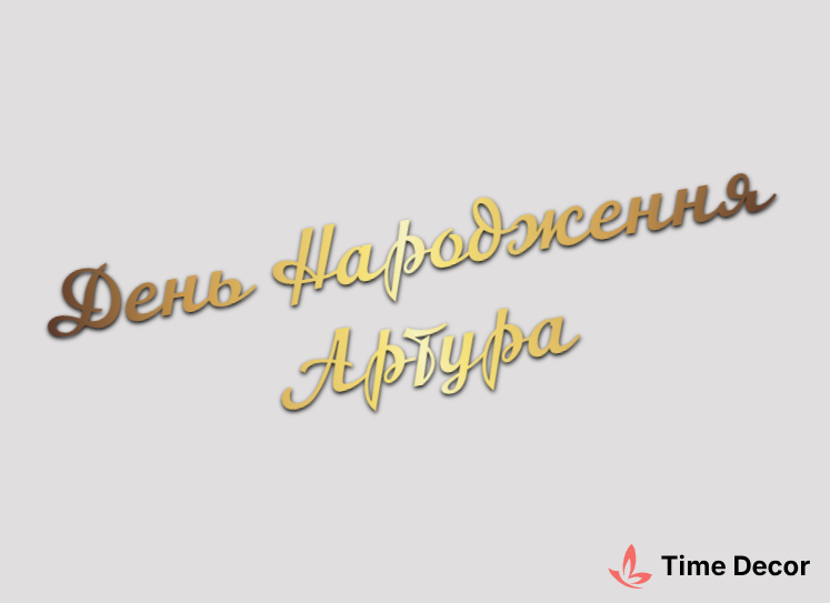 Пластиковий напис "День Народження Артура" – дзеркальний або матовий пластик, можливе виготовлення з клейкою зворотною поверхнею для легкого монтажу.