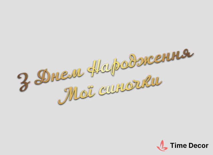 Пластиковий напис "З Днем Народження Мої синочки" – дзеркальний або матовий пластик, можливе виготовлення з клейкою зворотною поверхнею для легкого монтажу.