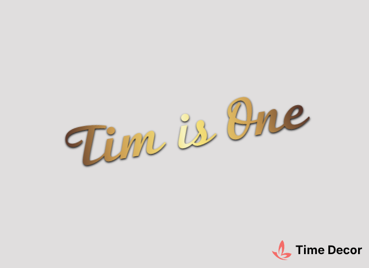 Пластиковий напис "Tim is One" – дзеркальний або матовий пластик, можливе виготовлення з клейкою зворотною поверхнею для легкого монтажу.