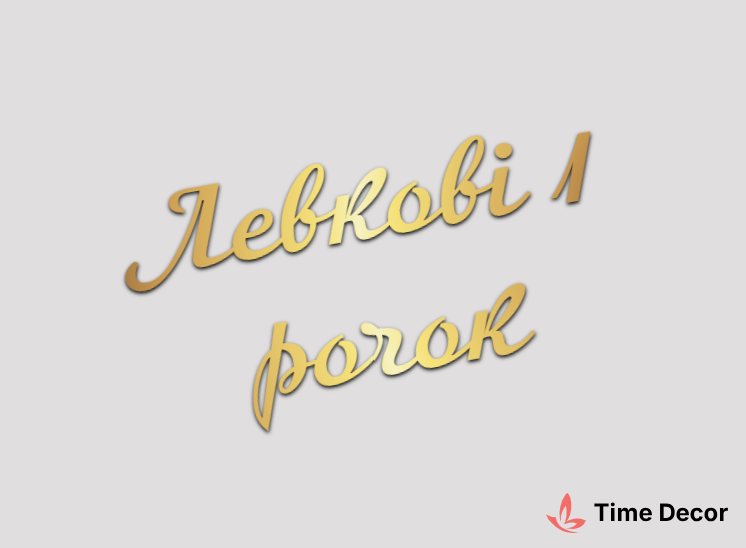 Пластиковий напис "Левкові 1 рочок" – дзеркальний або матовий пластик, можливе виготовлення з клейкою зворотною поверхнею для легкого монтажу.