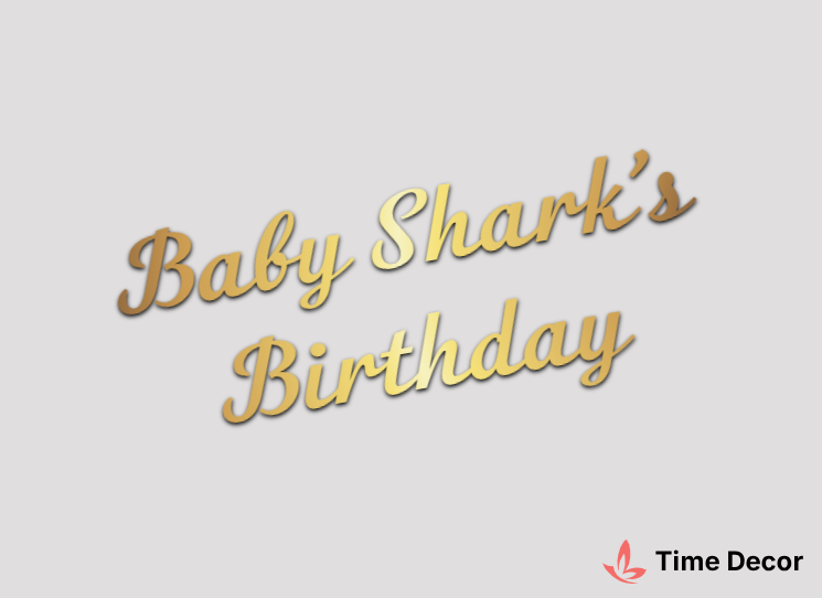 Пластиковий напис "Baby Shark’s Birthday" – дзеркальний або матовий пластик, можливе виготовлення з клейкою зворотною поверхнею для легкого монтажу.
