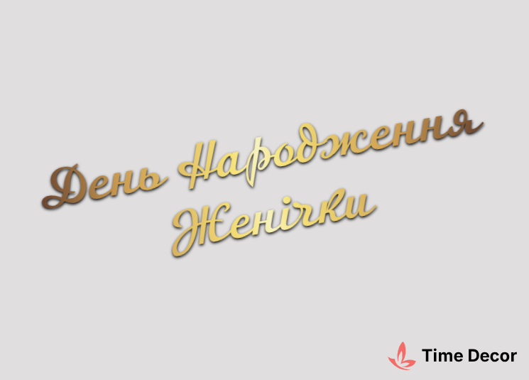 Пластиковий напис "День Народження Женічки" – дзеркальний або матовий пластик, можливе виготовлення з клейкою зворотною поверхнею для легкого монтажу.