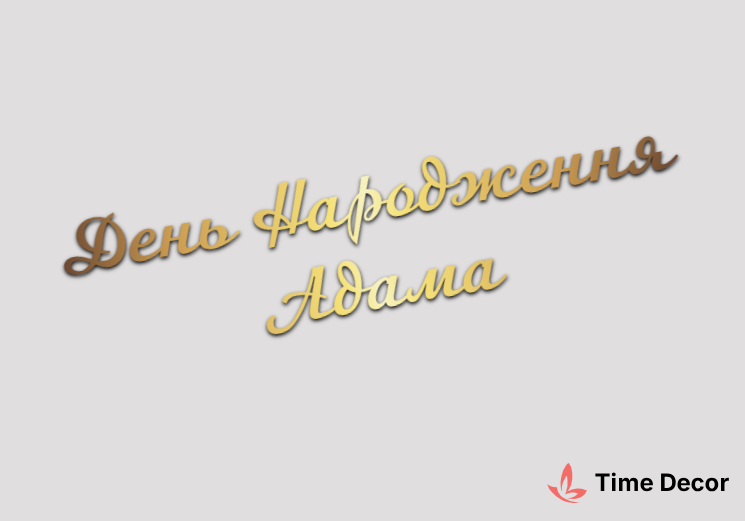 Пластиковий напис "День Народження Адама" – дзеркальний або матовий пластик, можливе виготовлення з клейкою зворотною поверхнею для легкого монтажу.