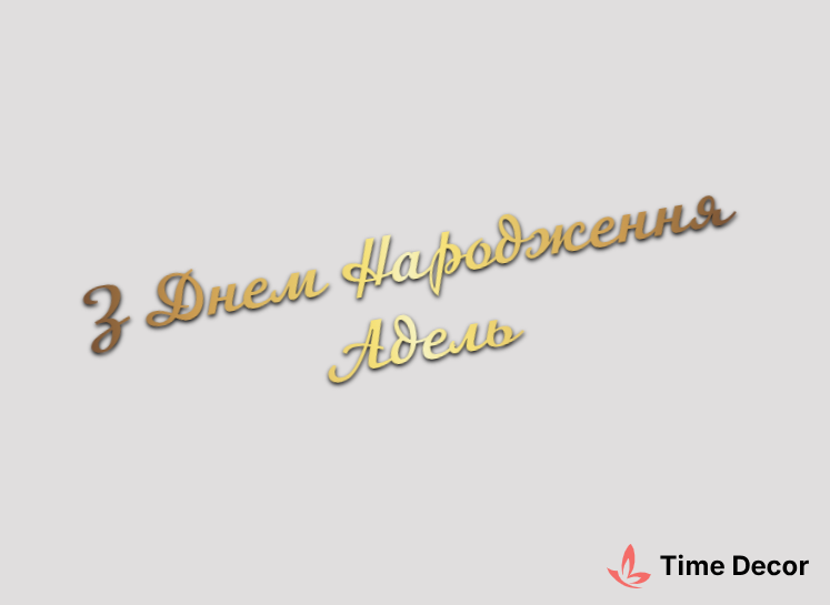Пластиковий напис "З Днем Народження Адель" – дзеркальний або матовий пластик, можливе виготовлення з клейкою зворотною поверхнею для легкого монтажу.