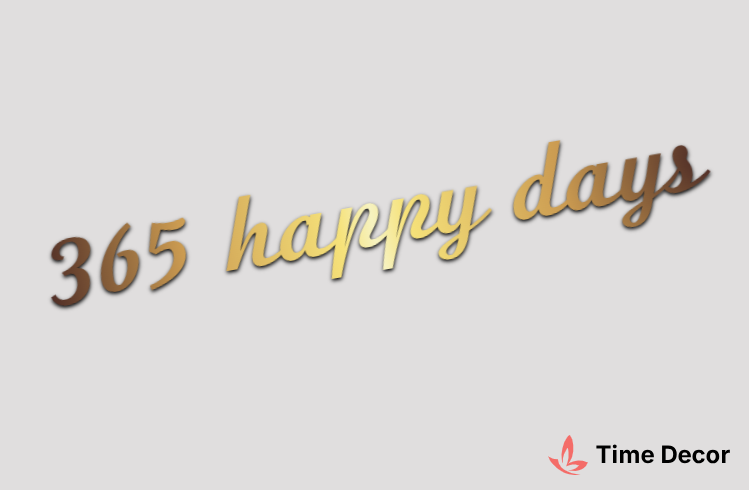 Пластиковий напис "365 happy days" – дзеркальний або матовий пластик, можливе виготовлення з клейкою зворотною поверхнею для легкого монтажу.