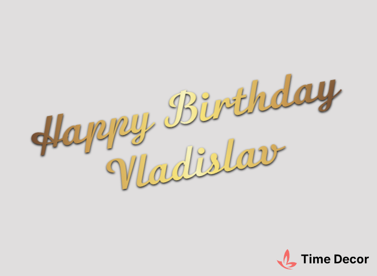 Пластиковий напис "Happy Birthday Vladislav" – дзеркальний або матовий пластик, можливе виготовлення з клейкою зворотною поверхнею для легкого монтажу.