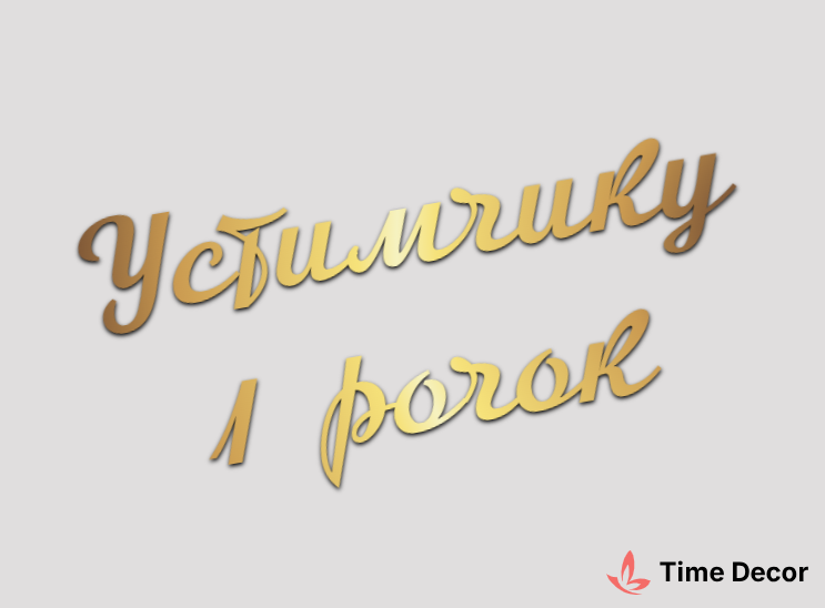Пластиковий напис "Устимчику 1 рочок" – дзеркальний або матовий пластик, можливе виготовлення з клейкою зворотною поверхнею для легкого монтажу.