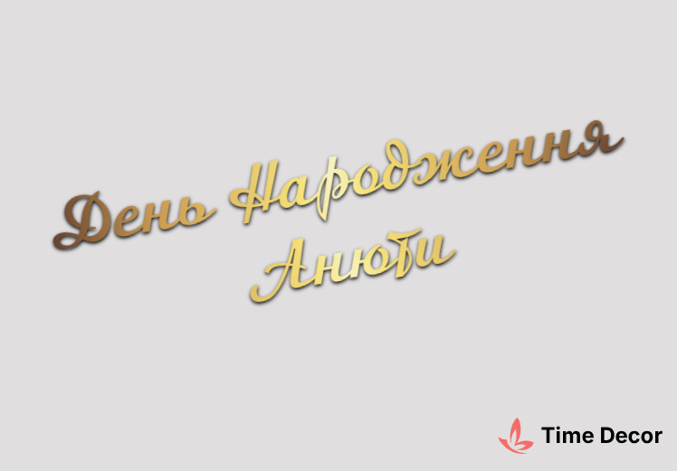 Пластиковий напис "День Народження Анюти" – дзеркальний або матовий пластик, можливе виготовлення з клейкою зворотною поверхнею для легкого монтажу.