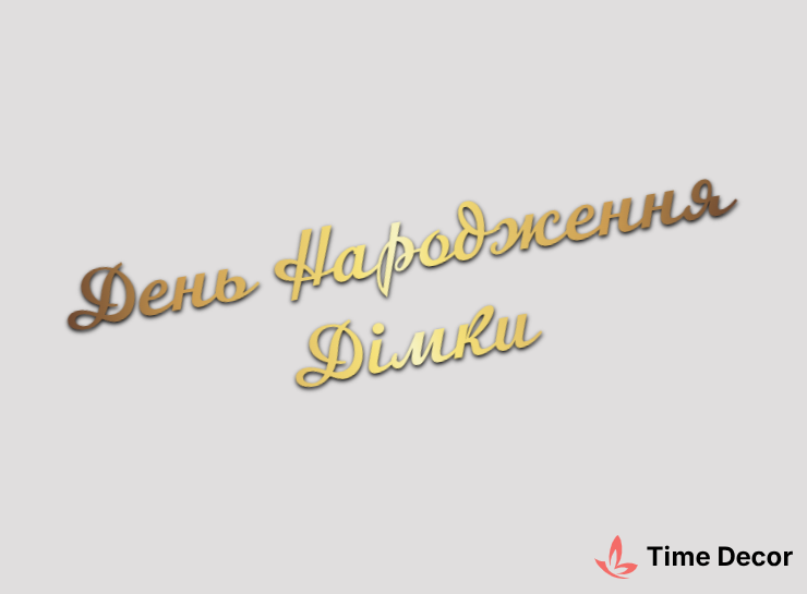 Пластиковий напис "День Народження Дімки" – дзеркальний або матовий пластик, можливе виготовлення з клейкою зворотною поверхнею для легкого монтажу.
