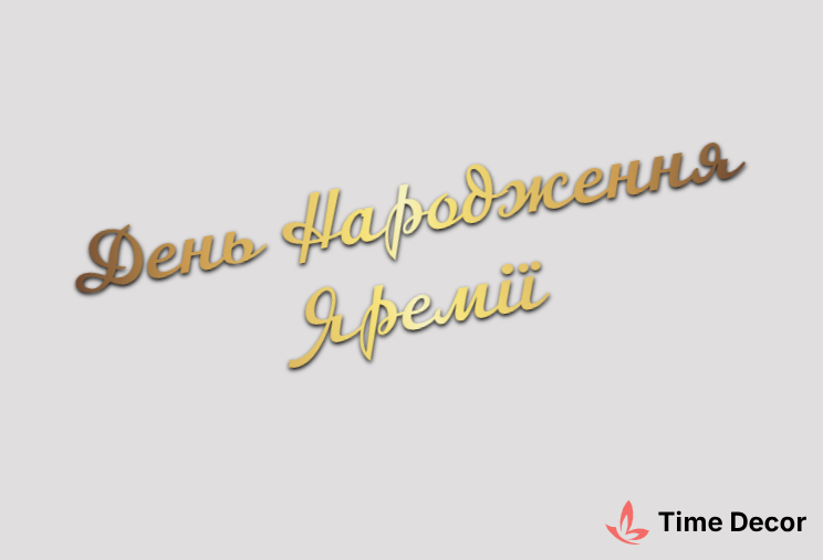 Пластиковий напис "День Народження Яремії" – дзеркальний або матовий пластик, можливе виготовлення з клейкою зворотною поверхнею для легкого монтажу.