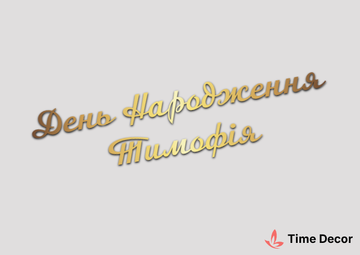 Пластиковий напис "День Народження Тимофія" – дзеркальний або матовий пластик, можливе виготовлення з клейкою зворотною поверхнею для легкого монтажу.