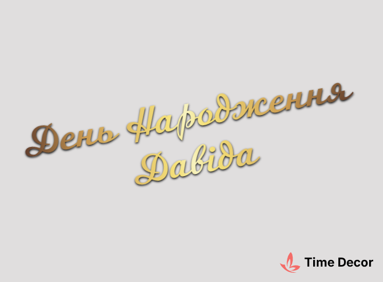 Пластиковий напис "День Народження Давіда" – дзеркальний або матовий пластик, можливе виготовлення з клейкою зворотною поверхнею для легкого монтажу.
