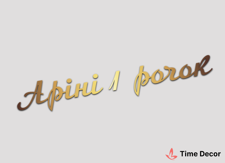 Пластиковий напис "Аріні 1 рочок" – дзеркальний або матовий пластик, можливе виготовлення з клейкою зворотною поверхнею для легкого монтажу.