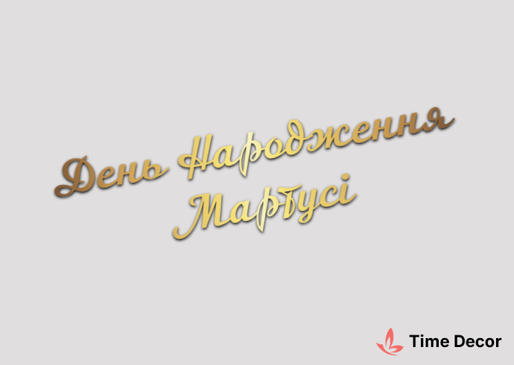 Пластиковий напис "День Народження Мартусі" – дзеркальний або матовий пластик, можливе виготовлення з клейкою зворотною поверхнею для легкого монтажу.