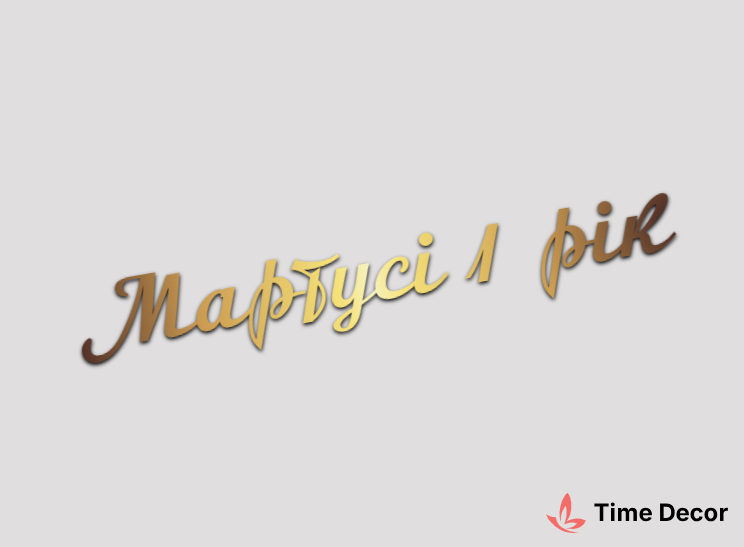 Пластиковий напис "Мартусі 1 рік" – дзеркальний або матовий пластик, можливе виготовлення з клейкою зворотною поверхнею для легкого монтажу.