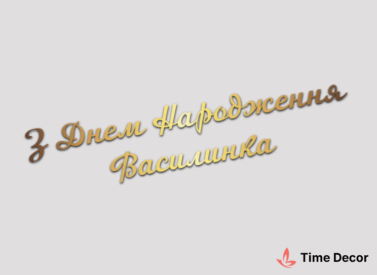 Пластиковий напис "З Днем Народження Василинка" – дзеркальний або матовий пластик, можливе виготовлення з клейкою зворотною поверхнею для легкого монтажу.