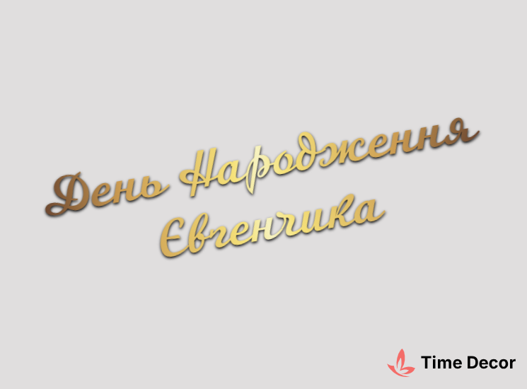 Пластиковий напис "День Народження Євгенчика" – дзеркальний або матовий пластик, можливе виготовлення з клейкою зворотною поверхнею для легкого монтажу.