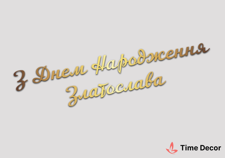 Пластиковий напис "З Днем Народження Златослава" – дзеркальний або матовий пластик, можливе виготовлення з клейкою зворотною поверхнею для легкого монтажу.