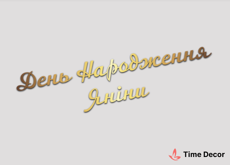 Пластиковий напис "День Народження Яніни" – дзеркальний або матовий пластик, можливе виготовлення з клейкою зворотною поверхнею для легкого монтажу.