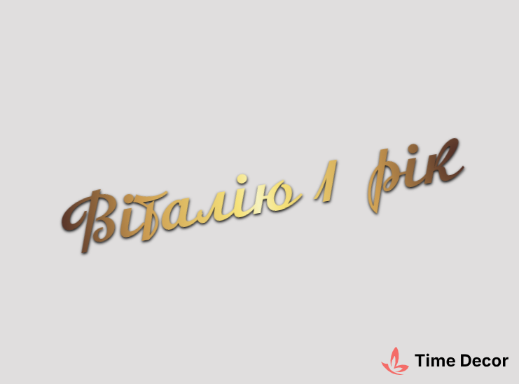 Пластиковий напис "Віталію 1 рік" – дзеркальний або матовий пластик, можливе виготовлення з клейкою зворотною поверхнею для легкого монтажу.