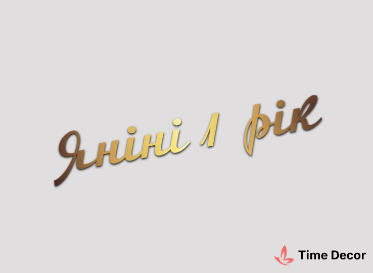 Пластиковий напис "Яніні 1 рік" – дзеркальний або матовий пластик, можливе виготовлення з клейкою зворотною поверхнею для легкого монтажу.